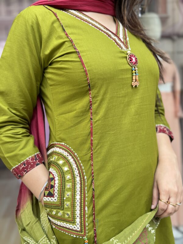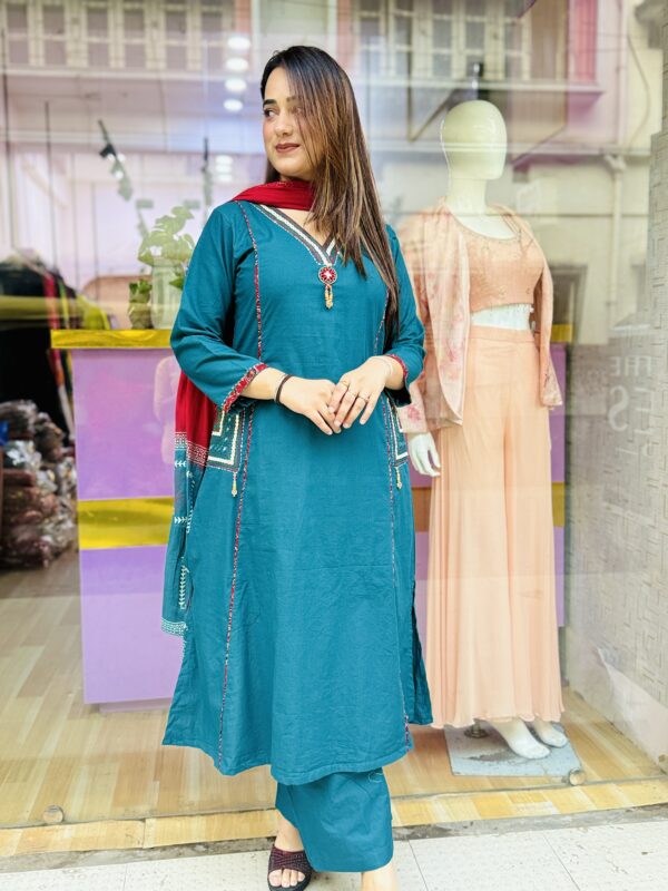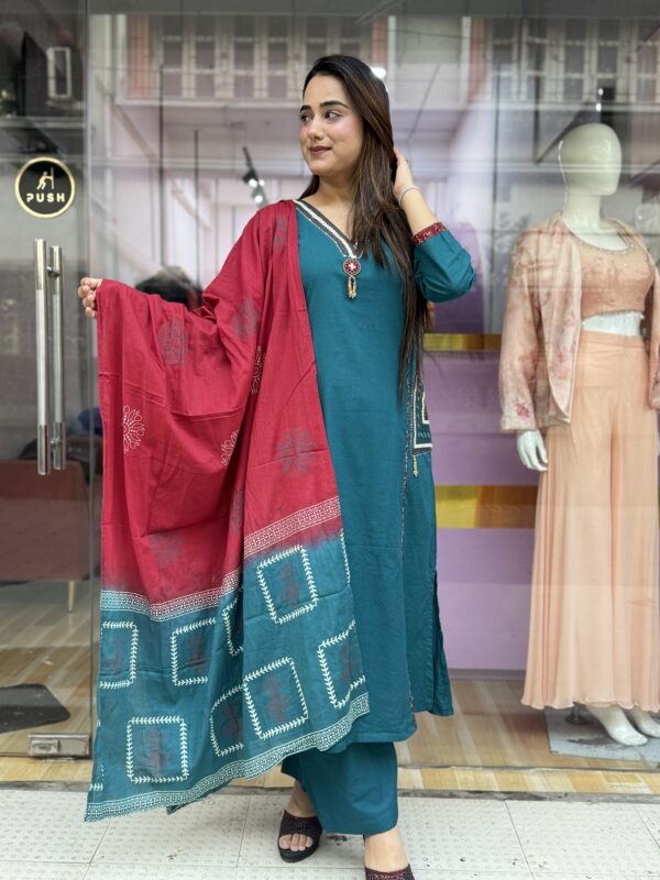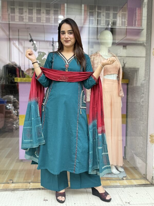 Color – mehendi green, teal blue, chocolate brown